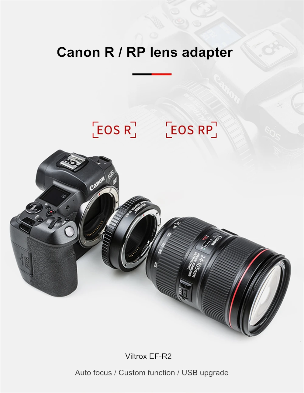 1. Этот Высококачественный адаптер для объектива специально разработан для существующих объективов EOS EF/EF-S для камер EOS R/RP. С электронными контактами, позволяющими фокусироваться автоматически.