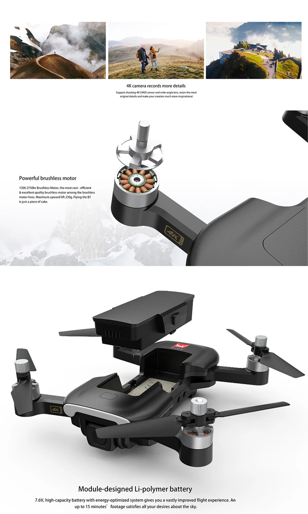 Особенности: 1) интеллектуальное позиционирование GPS: модуль оптического потока + система позиционирования gps-модуля, которая позволяет крытым и наружным объектам иметь хорошую производительность полета 2) Режим начинающих: Встроенный гео-забор для начинающего, ограничьте дальность полета с высоким ограничением, чтобы новички могли спокойно пользоваться 3) умное управление: ключ взлет, посадка ключ, ключ для возврата других функций, так что полет больше не трудно 4) безопасный полет: низкий возврат, потеря возврата, выход из-под контроля различных режимов защиты, возвращение полета, для обеспечения безопасности полета 5) Различные режимы полета: высокая-фиксированная, фиксированная-точка, следовать вокруг, указывая, трек и другой умный режим полета, может удовлетворить потребности различных сценариев 6) камера высокой четкости: 5G WI-FI FPV 4K 120ÌÌÌÌÌ ÌÌÌÌÌÌÌÌÌÌÌ» широкоугольный HD камера. Камера полета видео в то же время, с другой точки зрения, композиция получена Необычные работы 7) складной мини-Дрон: разработан, чтобы быть портативным, Квадрокоптер имеет складной дизайн руки, что позволяет носить в любом месте на ходу без хлопот. Характеристики: Название товара: GPS мини-Дрон B7 Мотор: 1306 2750kv бесщеточный мотор Частотный диапазон: 2,4G Вес при съемке дрона: 245 г Батарея дрона: 7,6 V 1500 mAh Li-po батарея Максимальное время полета: 15 минут Бла (беспилотный летательный аппарат) Размер: (просечно-вытяжной) 24*23,5*5,5 см (в сложенном виде) 14*7*5,5 см Камера: 5G Wi-Fi FPV 4K 120 широкоугольная HD камера. Может быть отрегулирован вручную 90 граммами». Разрешение фото и видео: 3840*2160 Расстояние управления и расстояние передачи изображения: 200-300 метров. Максимальная скорость полета: 25 км/ч Время зарядки: 150 минут (зарядное устройство может заряжать две батареи одновременно) Может быть загружена sd-картой для расширения памяти до 32 Гб. 1. Функция: подъем, спуск, поворот налево, поворот направо, полет влево и вправо, взлет и приземление одной кнопкой, возвращение домой с одной кнопкой, 5G передача изображения Wi-Fi, дистанционное управление камерой видео, быстрые и медленные файлы; 2. Дополнительные функции приложения: мобильный телефон, контроль, наблюдение, объемное изображение, карта, трек-полет, Безголовый режим, электронный забор. Уровень: промежуточный уровень Посылка включает в себя: 1 Дрон 1 пульт дистанционного управления 4 x пропеллера 1 х USB кабель 1 х руководство на английском языке Зарядное устройство-1 шт. 1 отвертка 1 х Руководство Вас ожидает СЮРПРИЗ подарок для 10 лучших покупателей на каждый деньДобрый день! Купили камеру для дома, живём в частном секторе! Взяли на пробу 1шт. Доставка пришла во время, упаковано герметично,... Читать отзыв полностью...