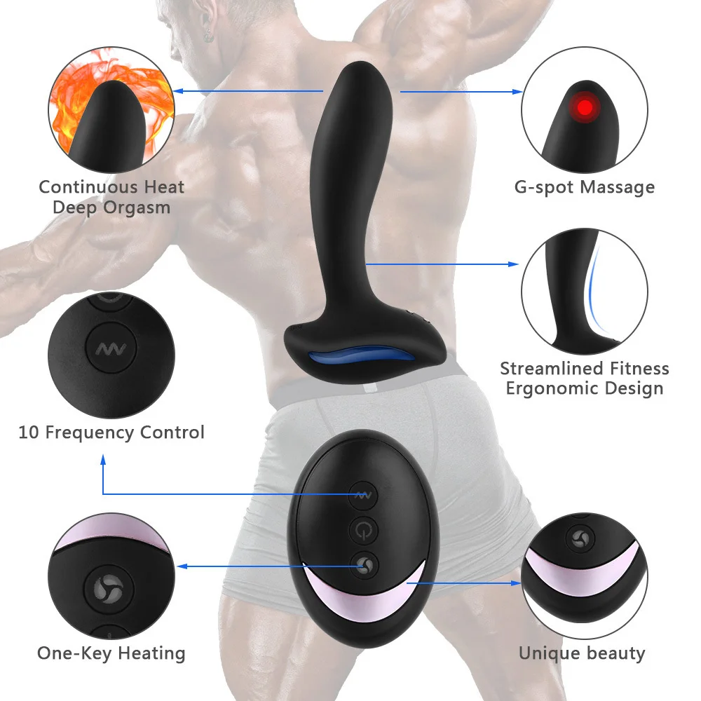 1. Интеллектуальная теплоизоляция 37 градусов помогает стимулировать мужское G-spot 2. Индикатор мигает вместе, когда вибратор вращается с одинаковыми частотами 3. 10 режимов для достижения различной стимуляции простаты и промежности 4. Детали продукта: однокнопочный нагрев и непрерывный нагрев глубокого оргазма, Массаж точки G и гуманизированный дизайн формы 5. Высококачественный медицинский силикон без запаха, 100% водонепроницаемый, за исключением пульта дистанционного управления