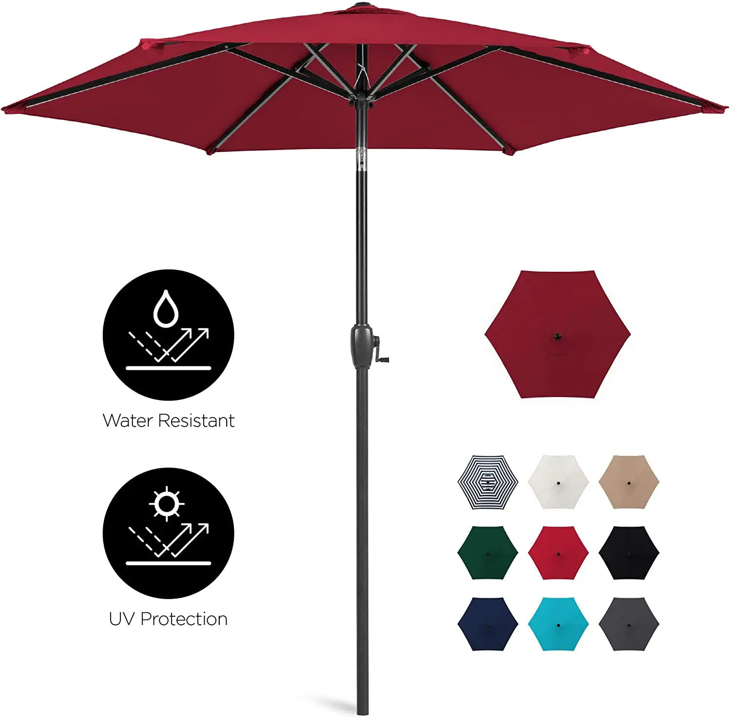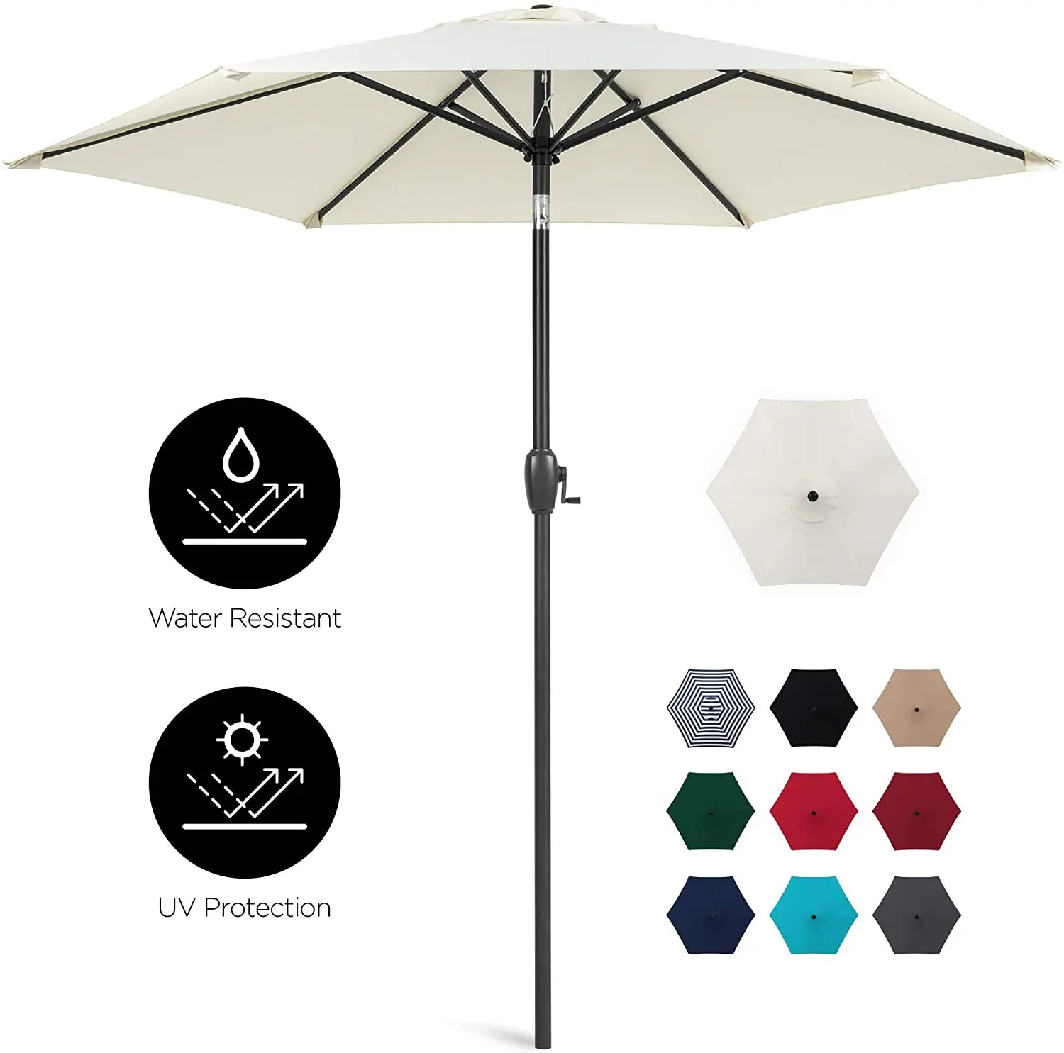 Сверхпрочная Рама: прочная 6-реберная стальная рама поддерживает навес 7,5 футов и помогает противостоять деформации и другим повреждениям ветра Все погодные условия: водонепроницаемая и устойчивая к ультрафиолетовому излучению полиэфирная ткань в сочетании с коррозионно-стойкой стальной рамой создает прочный и надежный зонт Удобные для пользователя механизмы: имеет рукоятку с ручным управлением, чтобы легко открыть и закрыть зонтик, в то время как система наклона кнопки добавляет дополнительную защиту для солнца Ветровое отверстие: воздух свободно течет через открытое пространство в верхней части навеса и создает охлаждающий перекрестный Бриз, добавляя дополнительную устойчивость против сильного ветра Классический наружный декор: зонтик диаметром 7,5 футов добавляет прохладу и красочному дополнению к каждому уличному сидению. Подходящая база зонта: SKY3784 (отдельно) или SKY4242 (через таблицу); Габаритные размеры: 90 "(Dia) x 96"(H) Характеристики: Габаритные размеры: 90 "(Dia) x 96"(H) Вес: 9 фунтов. Материал: сталь, полиэстер, пластик Требуется сборка (с инструкциями) Сборка без инструмента