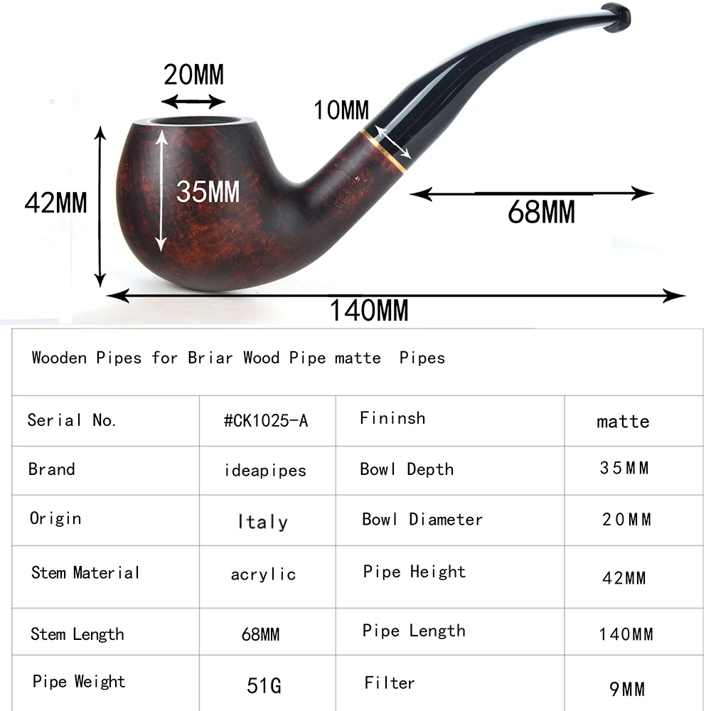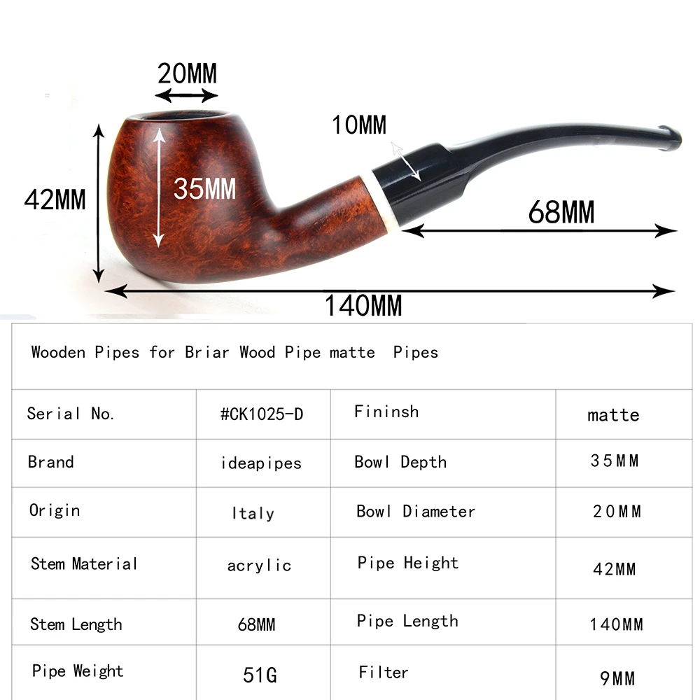 Ideapipes-очень известный производитель труб в Китае. С 2008 года компания импортирует большое количество бриарной древесины из Италии, чтобы начать производство труб. После более чем десяти лет исследований и обучения, опираясь на передовую производственную промышленность Китая. Наше производство бриарных труб измеряется с точки зрения качества и количества и достигло международного передового уровня. В то же время цена ex-factory ниже, чем в среднем по всему миру. На этот раз у нас есть три линии наших поставок. Линия А. Количество бриарных труб. Линия b. Трубы ручной работы. Линия c. Эбеновые трубы. Мы можем производить более чем 50000 шиповник трубы ежемесячно и может производить более 200000 черные трубы. Опишите размеры товара, включая различные размеры.