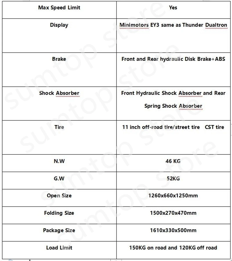 Спецификация Kickscooter Kaabo Wolf Warrior II: Модель: Wolf Warrior II Конфигурация: аккумулятор 60В 35ah Тип батареи: LG Максимальный диапазон: 150 км (Эко-режим) 90 км (режим двойного привода) Максимальная скорость: 80 км/ч Углы скалолазания: < 45 градусов Время зарядки с одним зарядным устройством: 17 + Мощность двигателя: двойной бесщеточный двигатель 1200 Вт X2 Материал оправы: авиационный алюминий T6082 + цельная ковка Тормоз: передний и задний гидравлический дисковый тормоз + ABS Амортизатор: передний гидравлический амортизатор и задний пружинный амортизатор Шины: 11 дюймов внедорожные шины/уличные шины CST шины Вес брутто: 52 кг Размер посылка: 1610x330x500мм