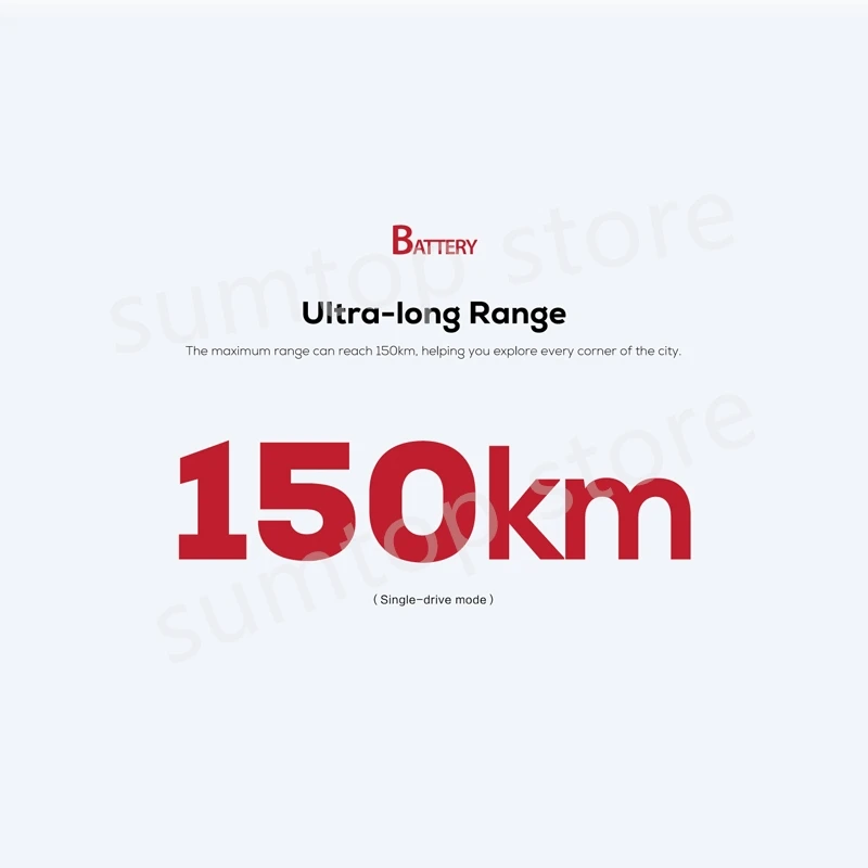 Максимальный диапазон может достигать 150 км (режим одиночного привода), помогая вам исследовать каждый уголок города.