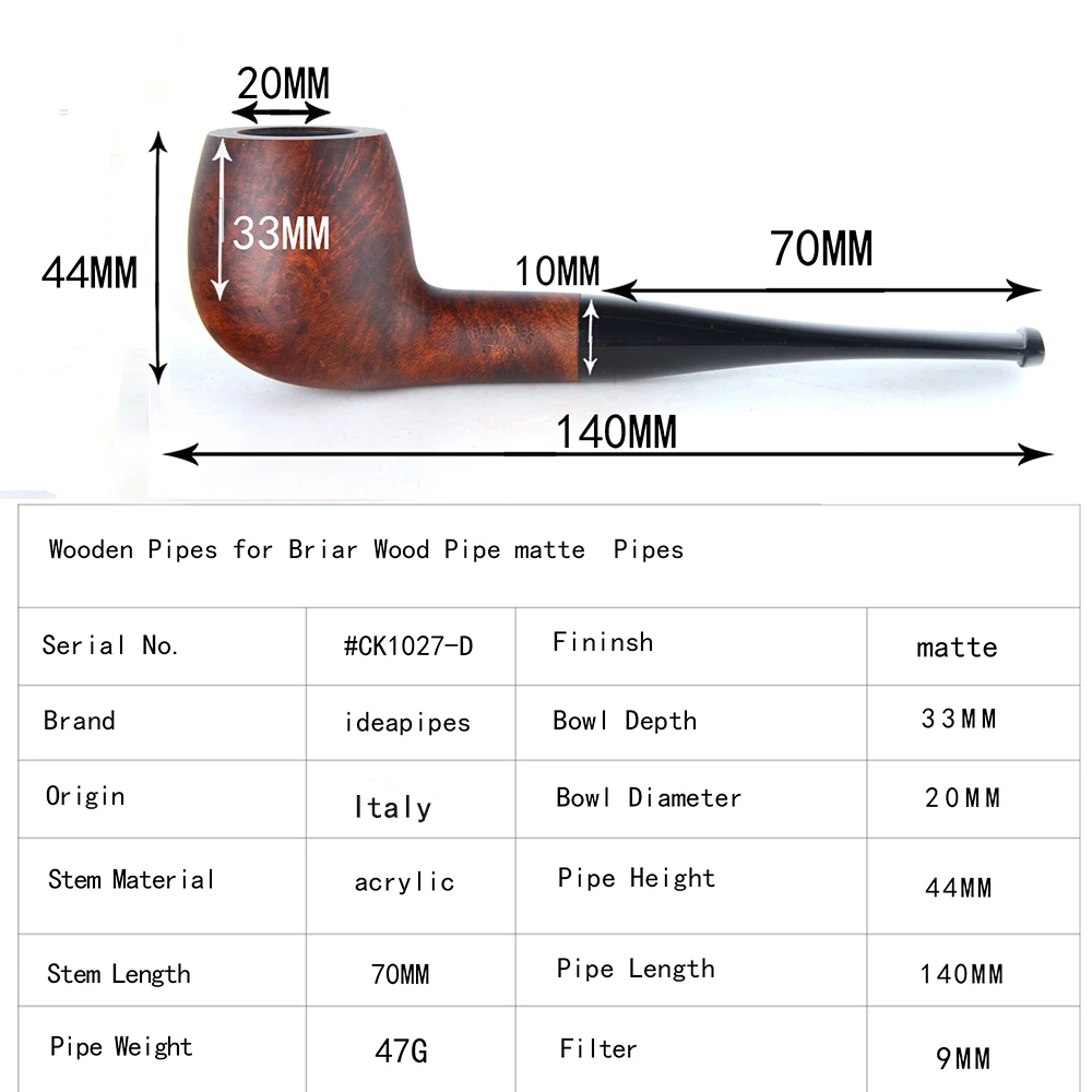 Ideapipes-очень известный производитель труб в Китае. С 2008 года компания импортирует большое количество бриарной древесины из Италии, чтобы начать производство труб. После более чем десяти лет исследований и обучения, опираясь на передовую производственную промышленность Китая. Наше производство бриарных труб измеряется с точки зрения качества и количества и достигло международного передового уровня. В то же время цена ex-factory ниже, чем в среднем по всему миру. На этот раз у нас есть три линии наших поставок. Линия А. Количество бриарных труб. Линия b. Трубы ручной работы. Линия c. Эбеновые трубы. Мы можем производить более чем 50000 шиповник трубы ежемесячно и может производить более 200000 черные трубы. Опишите размеры товара, включая различные размеры.