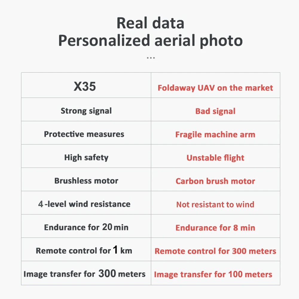 KALIONE X35 Дрон 4K GPS HD Gimbal камера 5G WIFI FPV бесщеточный двигатель Дрон Профессиональный Радиоуправляемый квадрокоптер VS K777 L109PRO SG906PROОписание:Номер товара:KALIONE X35Цвет: белый/черныйПодходящий возраст: 14 лет или старшеВнешний вид Материал: АБС-пластикКанал: 4 каналаГироскоп: 6 осейДвигатель:Бесщеточный двигательЭлектрический Угол регулировки камеры:90 °Широкий угол обзора камеры:118 °Карданный шарнир:Двухосевой антивибрационный стабильный стабилизаторSd-карта:НетПоддержкаЧастота конфигурации: 2,4 ГГцРасстояние дистанционного управления:1000 метров(Без помех, без окклюзии)Время зарядки: 200 минут или около тогоВремя полета:20 минут или около тогоМетод передачи: FPVРасстояние передачи фигуры:300Метров(Без помех, без окклюзии)Разрешение фото:3840*2160PРазрешение видео:1920*1080PРежим записи фотографий: пульт дистанционного управления + управление приложениемБатарея дистанционного управления: 4Батарейки АА (не входят в комплект)КвадрокоптерПерезаряжаемая батарея: 7,6 V 2200mAh литиевая батарея (входит в комплект) КвадрокоптерSИзд: 34*34*15 смВес квадрокоптера: 460 гОсобенности:-Со съемным пропеллером, Маленький размер, легко носить с собой.- Широкоугольная камера ESC 4k HD. Можно регулировать угол 90 ° с помощью контроллера.- 2-осевой антивибрационный стабильный стабилизатор: Оборудованный сочетает в себе светильник wight 2-Axis mechanical gimbal с новейшими профессиональными алгоритмами управления. Убедитесь, что камеры дрона обеспечивают высокое качество, уменьшая размытие, вызванное колебаниями во время полета.-С5G WIFIФункция может быть подключена к приложению, делать фотографии/видео, передача в реальном времени через Изображение камеры телефона- GPS вспомогательный полет. Предоставляет вам точные детали позиционирования вашего дрона. Дрон автоматически вернется домой точно, когда его батарея Низкая или сигнал слабый, когда вылет из диапазона, никогда не беспокоясь о потере дрона.-Режим удержания высоты. Установив давление воздуха снаружи, Квадрокоптер может стабильно парить в воздухе, что облегчает съемку.-Фото жестов/видео. Вы сломаете старый способ фотографирования и найдете новую вещь, сделав жесты, чтобы записать вашу красоту. (в пределах 1-3 м)- Максимальное время полета 20 минут. Высокоемкая Интеллектуальная батарея 7,6 V 2200mAh обеспечивает до 20 минут полета.- Бесщеточный двигатель. Он такой тихий, но очень мощный во время бега. Поломка редко происходит, и замена двигателя редко требуется, что делает ваш полет более приятным.- Режим следования за мной. Дрон будет автоматически следовать за вами и захватывает вас везде, где вы двигаетесь. Держать вас в кадре в любое время, легче получить сложные снимки, обеспечивает беспилотный полет и самообслуживания- Режим полёта Waypoint. Откройте приложение drone, используйте план полета у вас под рукой, просто нарисуйте маршрут на экране, вертолет будет автоматически летать по указанному пути.- Окружность фиксированной точки. Выберите одну точку, затем Дрон будет летать вокруг точки по кругу.-6-осевой g-yro, который может иметь более стабильный полет и легко управлять.-Фюзеляж квадрокоптера изготовлен из высокопрочного и стойкого инженерного пластика, легкого и прочного сопротивления.Функция:2-осевой стабильный стабилизатор,5G Wi-Fi FPV, ESC камера, GPS автоматическое возвращение, режим следования за мной, режим высоты, режим полёта с путевой точ