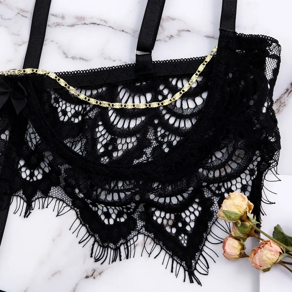 Что вы получаете: 1 комплект для женщинНижнее белье (1 сексуальный бюстгальтер 1 стринги 1 подвязка)