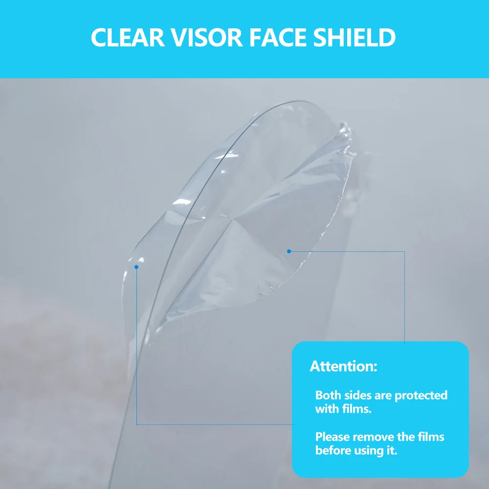Прозрачный козырек лицевой щит с прозрачным козырьком, который обеспечивает неограниченную видимость и эластичную головную повязку, что обеспечивает универсальное прилегание. Подготовьте один для ежедневного приготовления пищи, очистки, мастерской, как для внутреннего, так и для наружного использования.