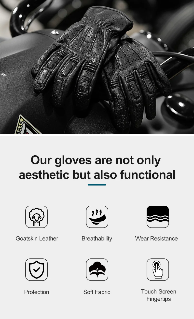 Перфорированная кожа на большой площади перчатки мотоцикла позволяет свежему воздуху войти, чтобы ваши руки были сухими и прохладными эффективно.