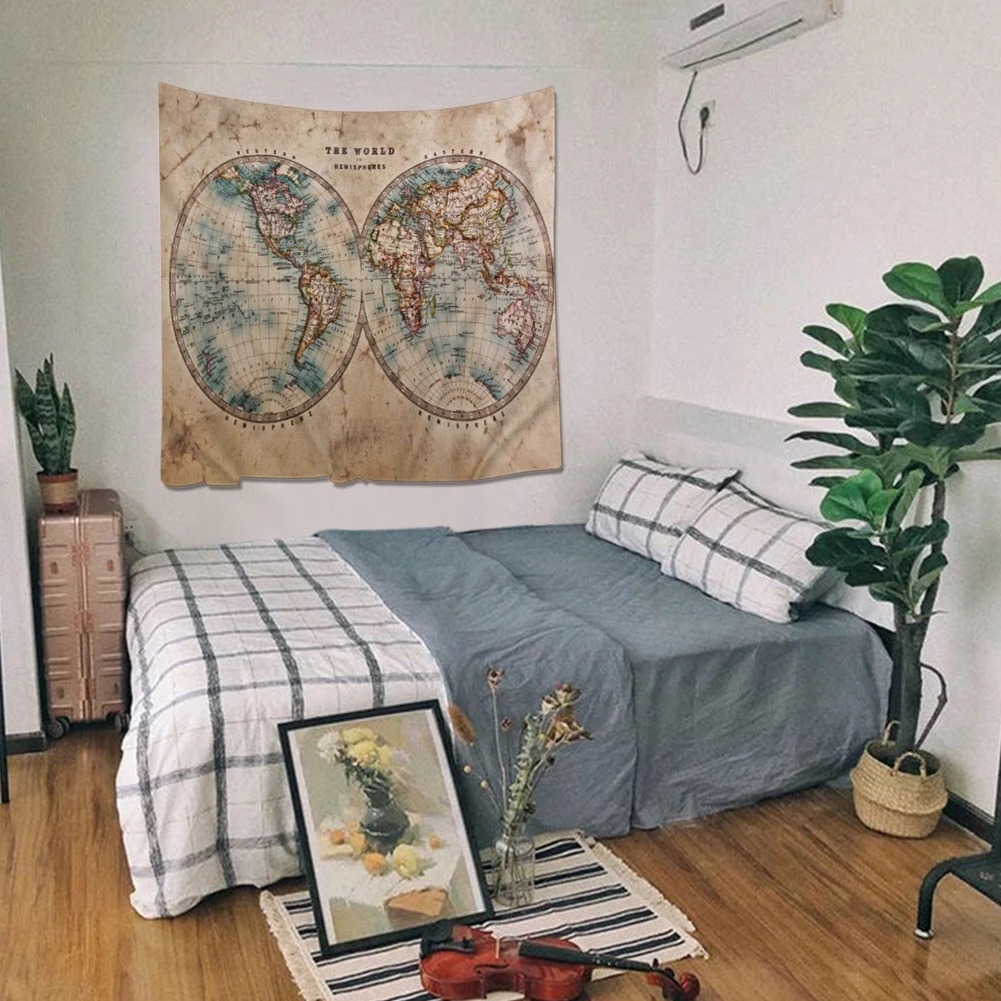 Ретро Карта мира узор МАНДАЛА ГОБЕЛЕН Настенный декор чакра Коврик для йоги абстрактный настенный гобелен из ткани