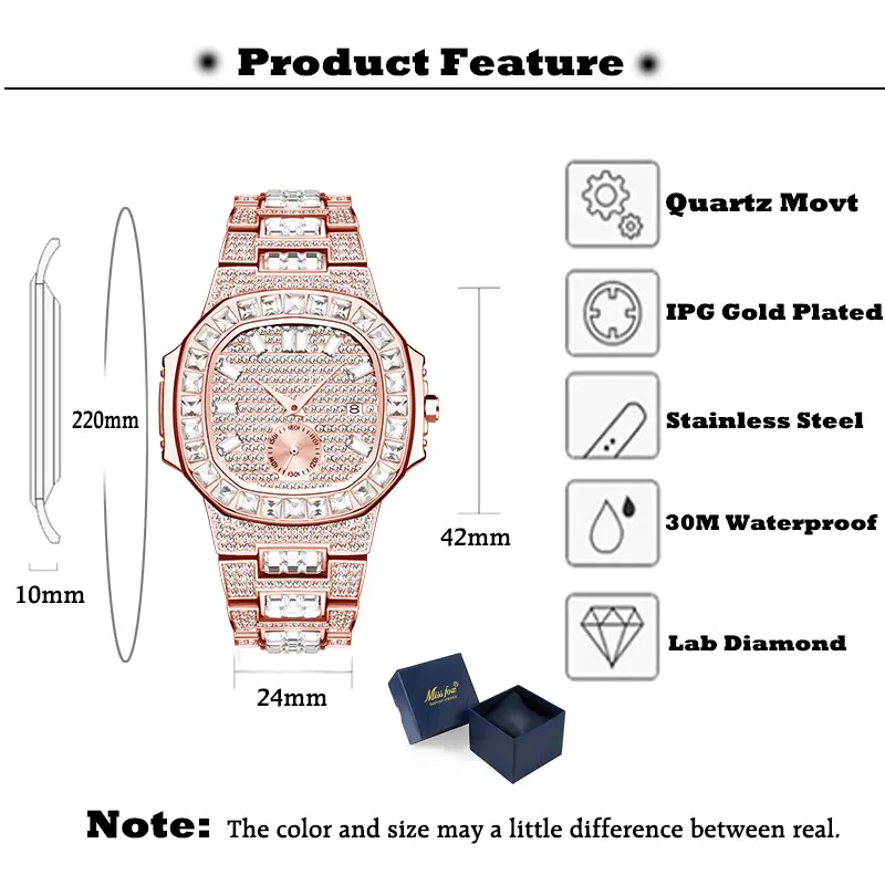 Прямая поставка Patek PP Nautilus 7014 дизайнерские розовое золото наручные часы Geneva для мужчин хип-хоп полностью Iced Out мужские s PP часы 2020 -Стиль: класса люкс -Особенности льдом -100% новый и высокое качество. -Точный кварцевый механизм для точного сохранения времени. -30 м Водонепроницаемость (не для душа и плавания), ударопрочность, полный календарь -18K золото нано вакуумное покрытие, золотой цвет не выцветает. -Рождественский подарок, отжиг, вечерние, день рождения, одежда для свиданий Характеристики (прибл.): Чехол диаметр: 4,4 см прибл. Чехол Толщина: 1,2 см прибл. Материал корпуса: нержавеющая сталь Группа Ширина: 2,5 см Длина ремешка: около 22,00 см Материал ремешка: нержавеющая сталь Регулируемый ремешок: нет, может быть продлен, свяжитесь с нашей Золотой службой поддержки клиентов Посылка включает в себя: Оригинальные часы MISSFOX-1 шт., оригинальные часы MISSFOX-1 шт.