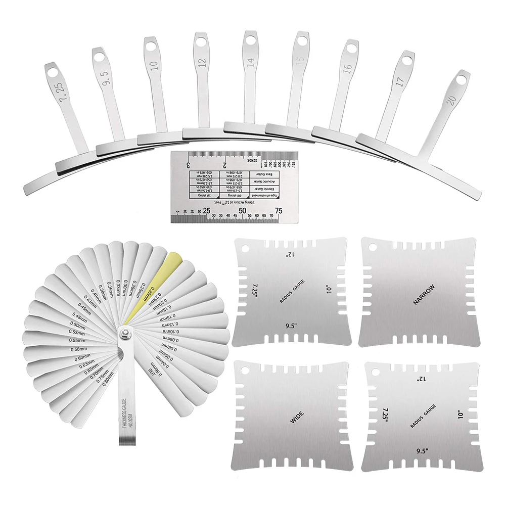 1 комплект гитарный бас измерительный инструмент с радиусом нижних струн щупа зубчатый радиус измерительный прибор струнный комплект линеек Инструмент Luthier