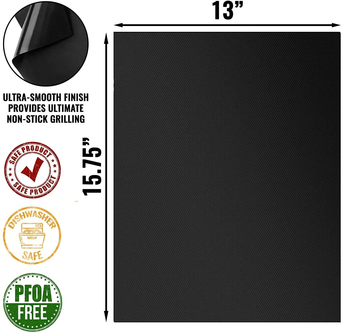 Прошли FDA, LFGB, BPA FREE, BSIC, health and safety, в соответствии со строгими европейскими санитарными стандартами пищевых продуктов, могут быть использованы безопасно. Наш коврик для гриля, очень толстый и прочный.