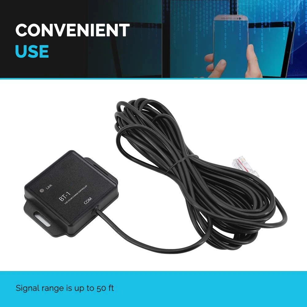 BT-1-это новое поколениеСовместимость с BluetoothМодуль для контроллеров солнечного заряда Renogy. BT-1 обеспечивает беспроводной мониторинг данных системы и устанавливает рабочие параметры через приложение для смартфона.