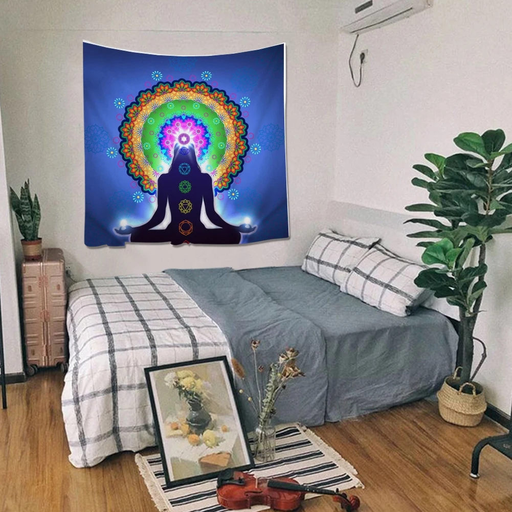 Статуя индийского Будды медитация 7 Чакра гобелен настенный Декор коврик для йоги Psychedelic абстрактный настенный гобелен из ткани