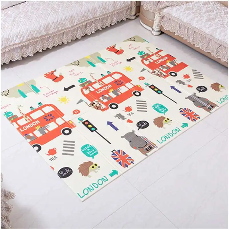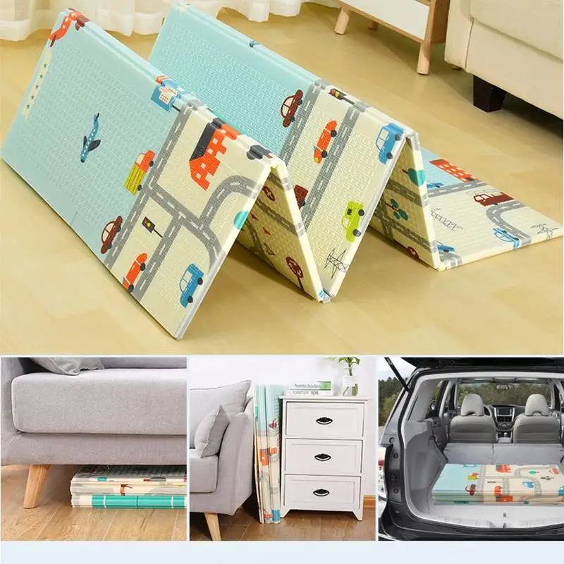 -Коврик очень легко складывается, компактный размер не занимает много места для хранения. Двусторонний дизайн с разными цветами и узорами удивит вас и принесет ребенку больше ощущения свежести, чтобы пробудить его любопытство.