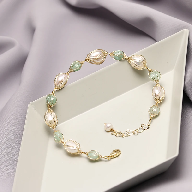 Оригинальные украшения ручной работы 100% натуральный пресноводный жемчуг барокко 100% натуральный нефрит 100% золото 14 карат 100% без аллергии 100% не выцветает