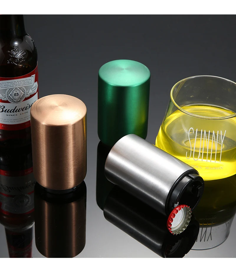 Feature: Stainless Steel Beer Bottle Opener, Automatic And Effortless. Just Put The Opener Onto The Bottle And Press The Top Of The Opener. It Is Very Easy To Used. Can Be Advertising, Business Gifts, Trade Shows, Public Relations Plan, Holidays, Housewarming, Awards and so on. Applied to Beer Bottle Opener, Widely Used For Bars, Hotels, Restaurants, Party venue. Dimensions: 8.7 cm x 5.3 cm x4.4cm Color:Silver+Rose Gold+Gold Material:Stainless steel