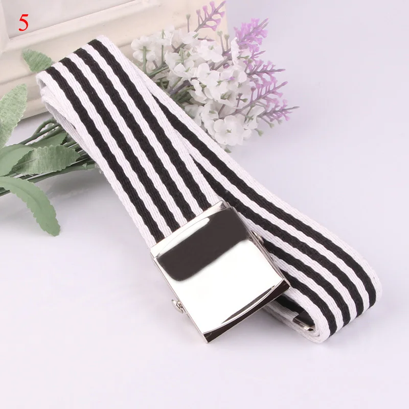 Женский и мужской ремень унисекс из парусины с гладкой пряжкой, полосатый джинсовый ремень, повседневный пояс