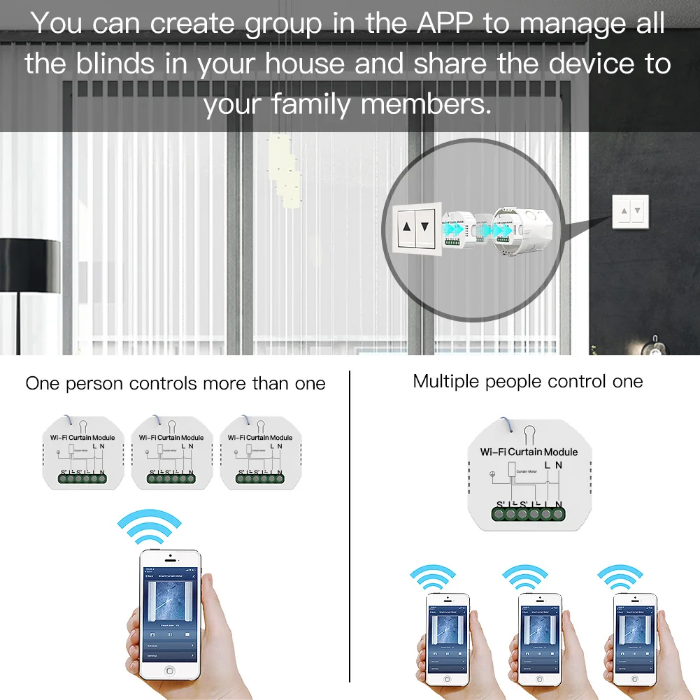 О: Нет, вы можете просто подключить модуль к вашему традиционному переключателю штор для реализации интеллекта.