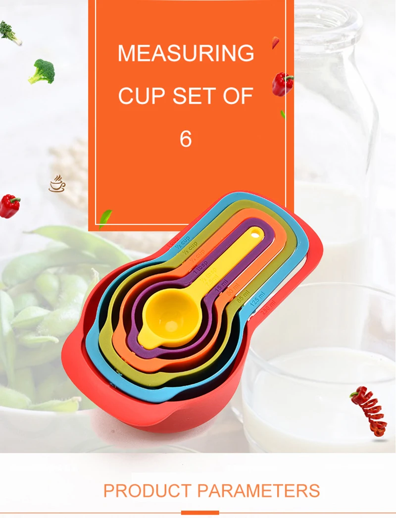 Описание: Тип изделия: набор кухонных мерных чашек из 6 штук Размер: как показано Особенности: 1. Точное измерение, более высокая эффективность. 2. Удобная ручка, выбранный материал PP, безопасный и здоровый