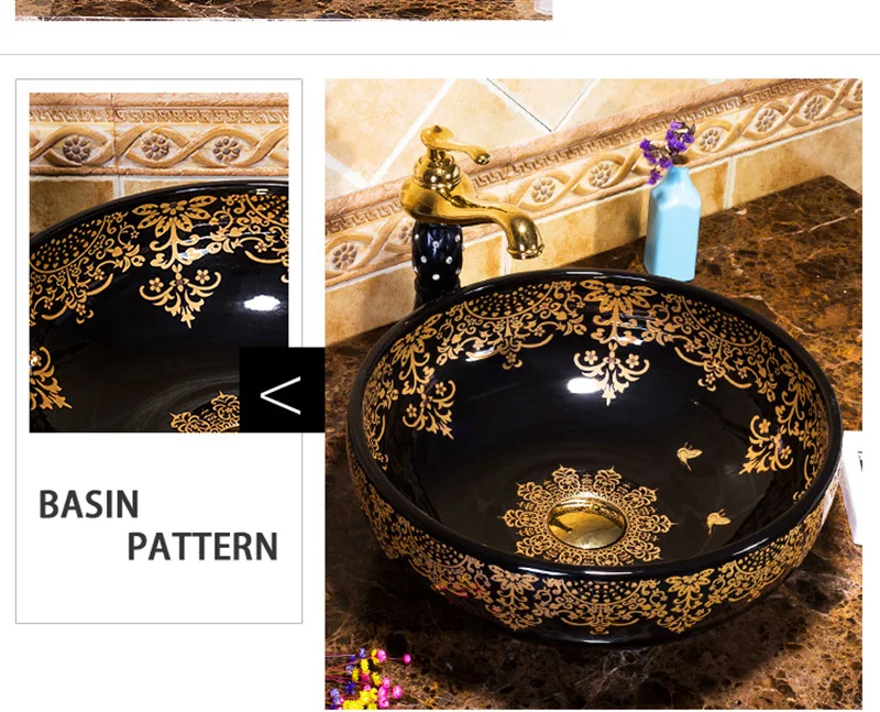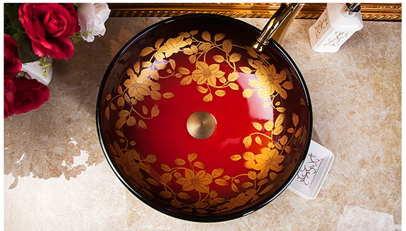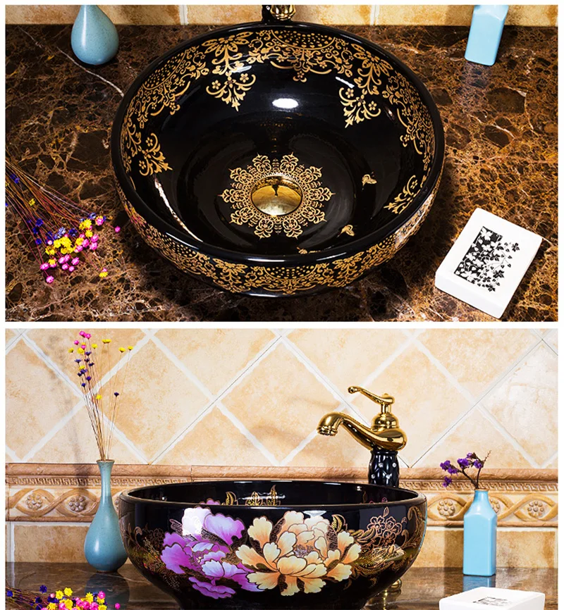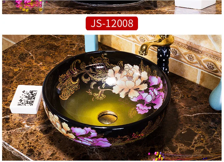 Роскошная художественная керамическая раковина, раковина для ванной комнаты, раковина для туалета, раковина для шампуня, круглая столешница, умывальник, подходящий набор для слива