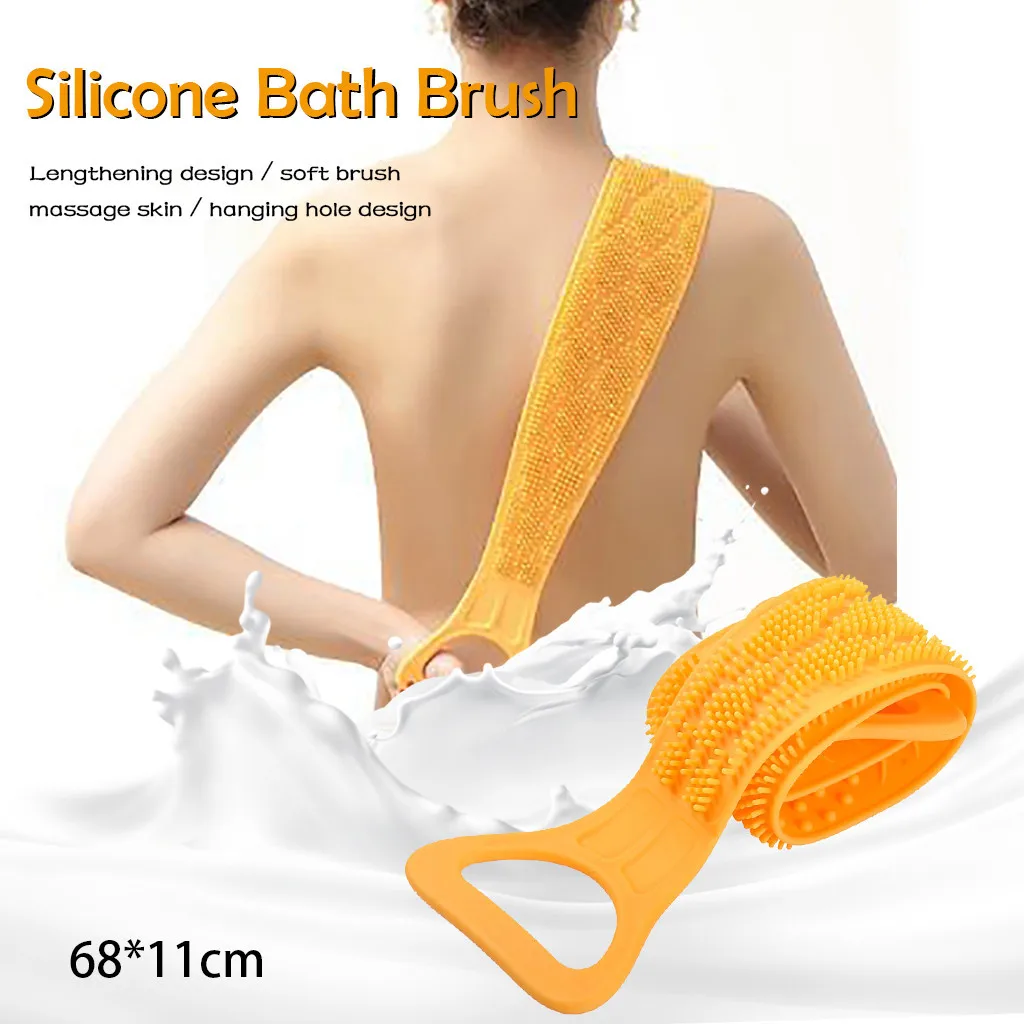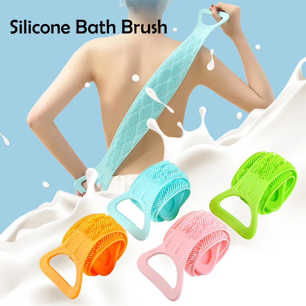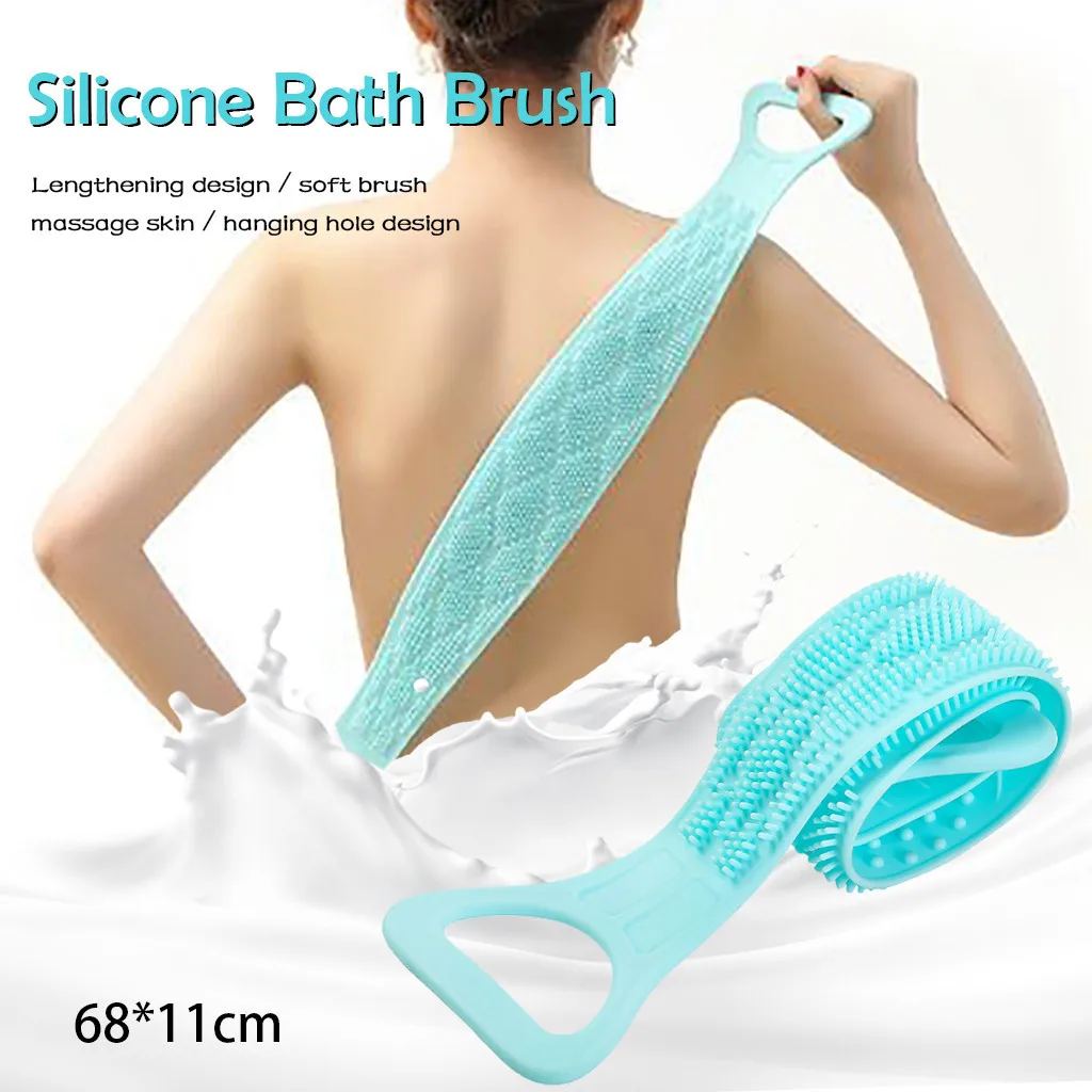 Длинная Задняя щетка для полотенец, щетка для ванны, двусторонняя скруббер, силиконовый скраб для ухода за кожей тела, отшелушивающая губка, ванная комната, Душ, стирка
