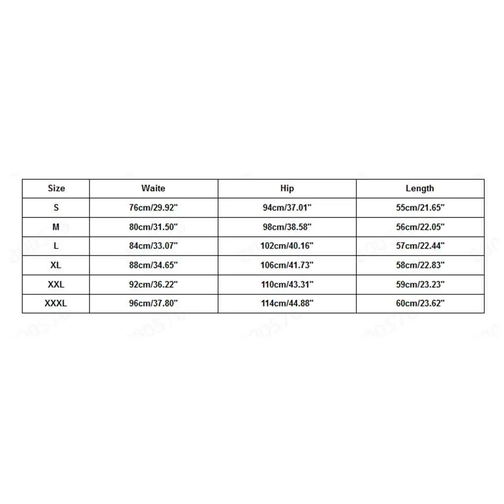 Пожалуйста, сравните детальные размеры с вашими перед покупкой! Цвета могут немного отличаться в зависимости от настроек компьютера и монитораПожалуйста, учитывайте разницу в 1-3 см из-за ручного измерения, спасибо (все Размеры указаны в см, и, пожалуйста, примите во внимание, что 1 см = 0,39 дюйма) Размеры таблицей:Размеры Уэйт Обхват бедер Длина S 76 см/29,92'' 94 см/37,01'' 55 см/21,65'' М 80 см/31,50'' 98 см/38,58'' 56 см/22,05'' L 84 см/33,07'' 102 см/40,16'' 57 см/22,44'' XL 88 см/34,65'' 106 см/41,73'' 58 см/22,83'' XXL 92 см/36,22'' 110 см/43,31'' 59 см/23,23'' XХХL 96 см/37,80'' 114 см/44,88'' 60 см/23,62''