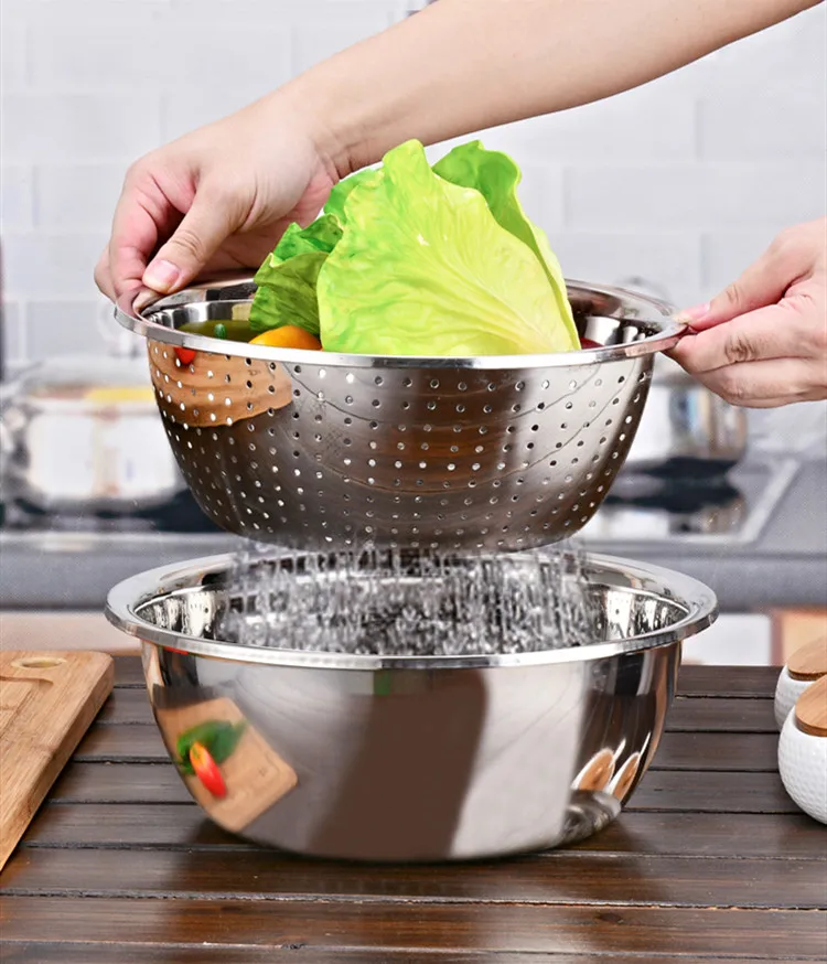 Material: Stainless steel Specification: As shown Size: As shown Uses: Washing vegetables, fruits, etc