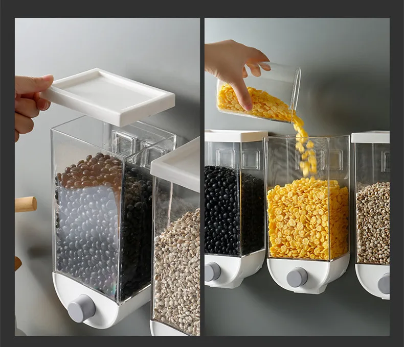 1000/1500ML kitchen Wall-mounted Storage Box Grain Storage Tank Sealed Cans Manual Cereal Rice Beans Dispenser