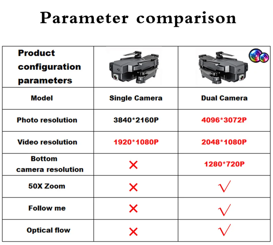Обратите внимание на следующее перед заказом: 1. Мы продаем две версии, одна"4K один Камера"Версия, другая"4K с двойной камерой"Версия Функция масштабирования 2.50X (доступна только в версии двойной камеры) Советы: О отклонении: вы можете использовать калибровку гироскопа, с тонкой настройкой, чтобы сделать беспилотный Летающий плавно Описание: Беспилотный летательный аппарат Название: SG107 Частота: 2,4 ГГц Канал: 4ch Гироскоп: 6 A XIS Аккумулятор квадрокоптера: 3,7 V 1200mAh литиевая батарея Батарея передатчика: 2 х 1,5 элемент питания AAА (в комплект не входит) Время зарядки: 120 минут Время полета: 15 минут Вес дрона: 113,2 г (с батареей) Расстояние дистанционного управления: 150 м Камера: 4K Одиночная камера/4K двойная камера Четырехсторонний Размер: 28*22*5,5 см (рука не сложена) Размер: 12*7,5*5,5 см (в сложенном состоянии в четырех ногах) Особенности: 1.3.7V 1200mAh модульная батарея большой емкости, больше времени полета. 2. С складной ручкой, она маленькая и легко носить с собой. 3. Имеет высокую функцию режима удержания для обеспечения стабильного полета. 4. С функцией Wi-Fi вы можете подключиться к приложению, системе APK, чтобы делать фотографии, видео и передавать изображения в режиме реального времени через мобильный телефон-камеру. 5. С режимом полета. Вы можете выбрать нужный вам маршрут. 6. Жесты для фотографирования. Mv функции редактирования музыки. 7. Нет режима головы, нет необходимости регулировать положение самолета перед полетом. 8. С функцией возврата одной кнопкой вы можете легко найти свой путь домой. 9. Анти-помех использует 2,4 ГГц технологии. 10,4 каналов, который может быть поднят, опускается, отправленные, удалялся, левшей, правши, так и для 360 ° проката. 11. Шестиосевой гироскоп для более стабильного полета и легкого управления. Корпус с четырьмя роторами изготовлен из высокопрочного и инженерно-стойкого пластика, легкий и прочный. Посылка включает в себя: 1 x Квадрокоптер SG107 RC 1 х пульт дистанционного Управление 1 х пульт дистанционного управления Джойстик 1 х USB кабель для зарядки 2 х Запасные пропеллеры 4 x защитное кольцо для лезвия 1 х Отвертка Руководство пользователя-1 шт.; 1x2x3 батареи, которые вы выбираете 1 x коробка из пены или сумка для переноски, которую вы выбираете