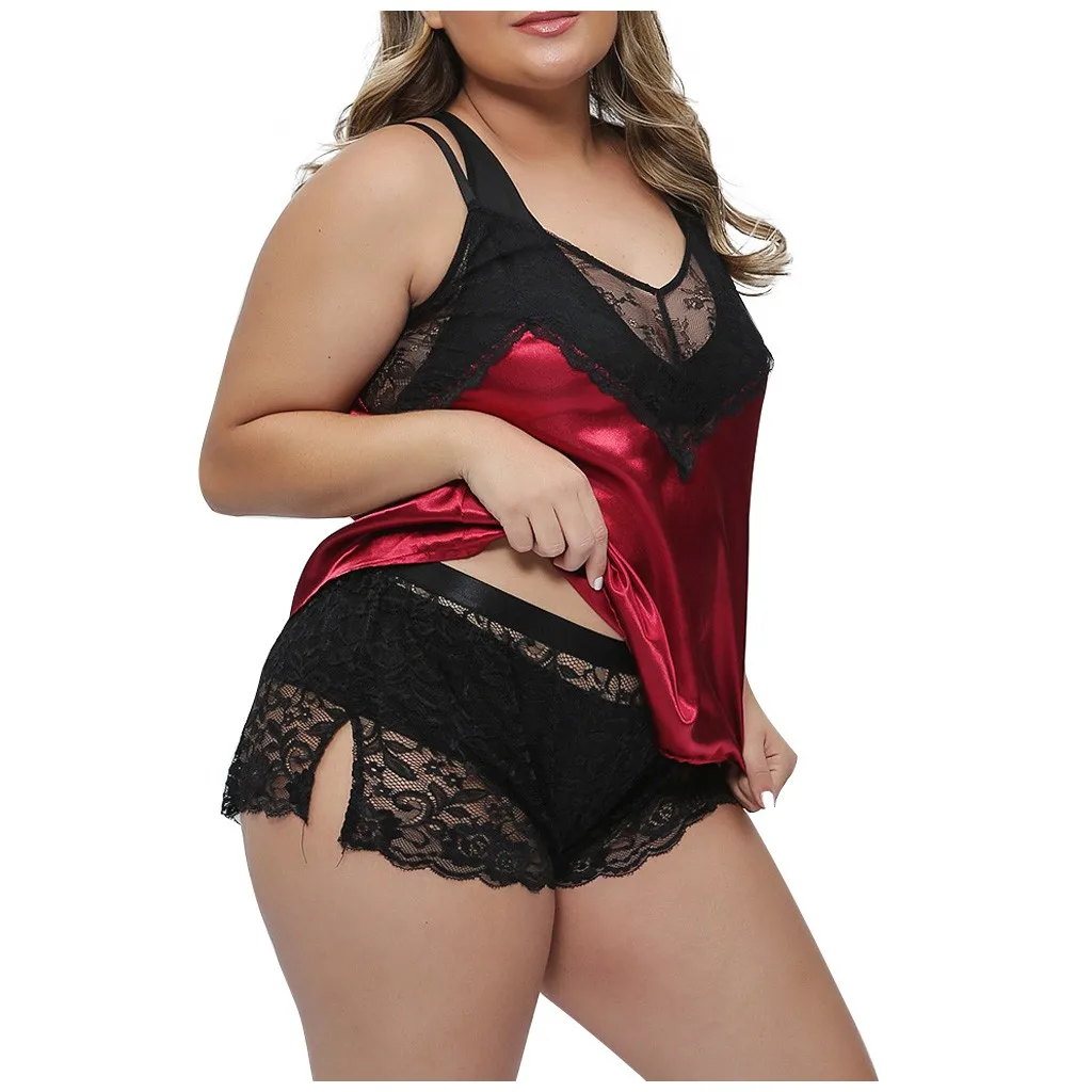 Женские пижамные комплекты, новинка 2020, сексуальное кружевное атласное ночное белье, костюм, нижнее белье, ночная рубашка, пижамы, Ensembles de pyjama