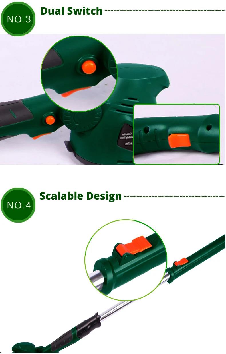 1 x триммер для травы/триммер для изгороди/Садовая пила 1 x ручка и колеса 1 х Аккумулятор (литий-ионный) 1 зарядное устройство и зарядная станция (VDE) Руководство пользователя (на английском языке)-1 шт.