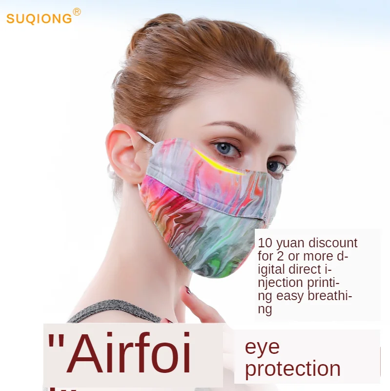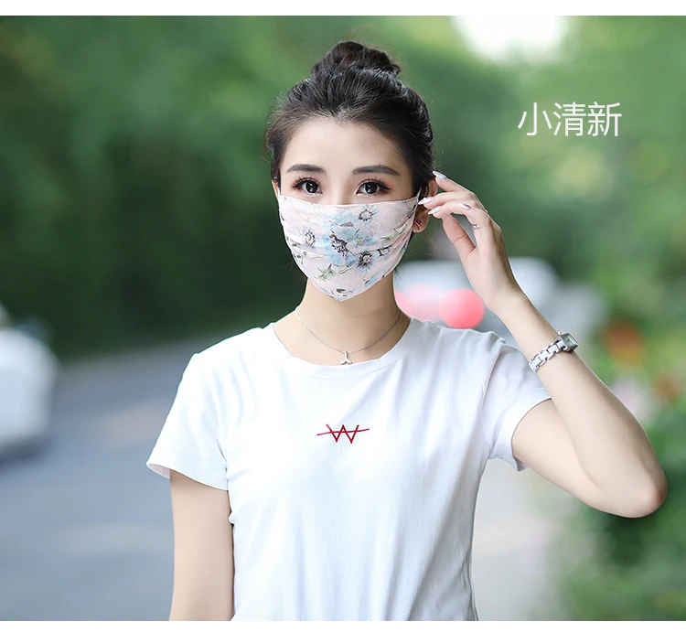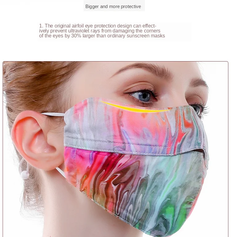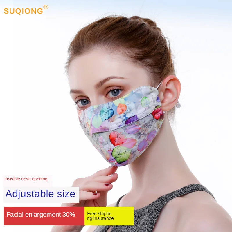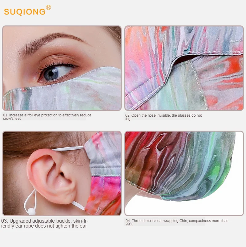 Цвет: 596556139552 2 шт. шелковая маска с принтом | Тонкая маска для лица Женская Солнцезащитная маска дышащая