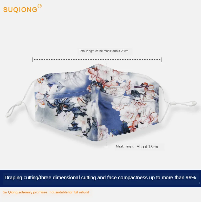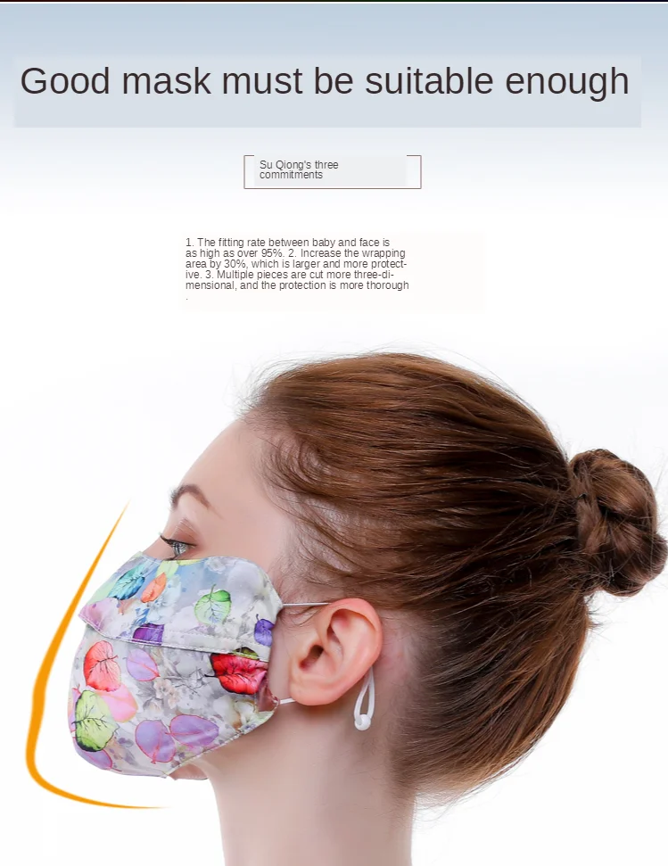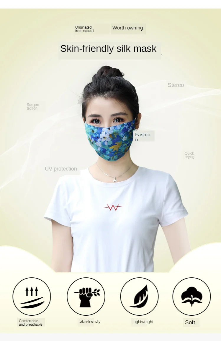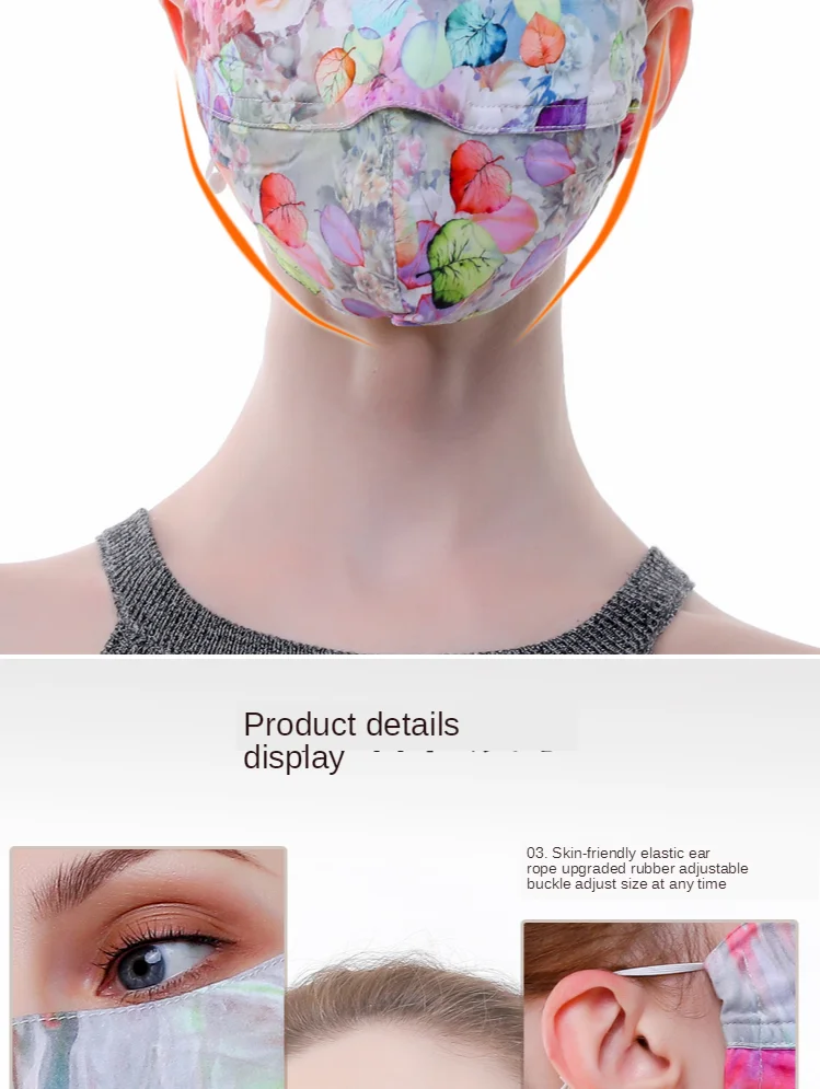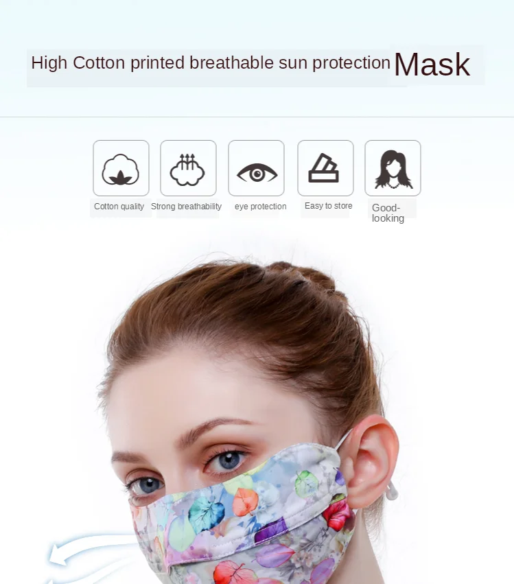 Цвет: 596556139552 2 шт. шелковая маска с принтом | Тонкая маска для лица Женская Солнцезащитная маска дышащая