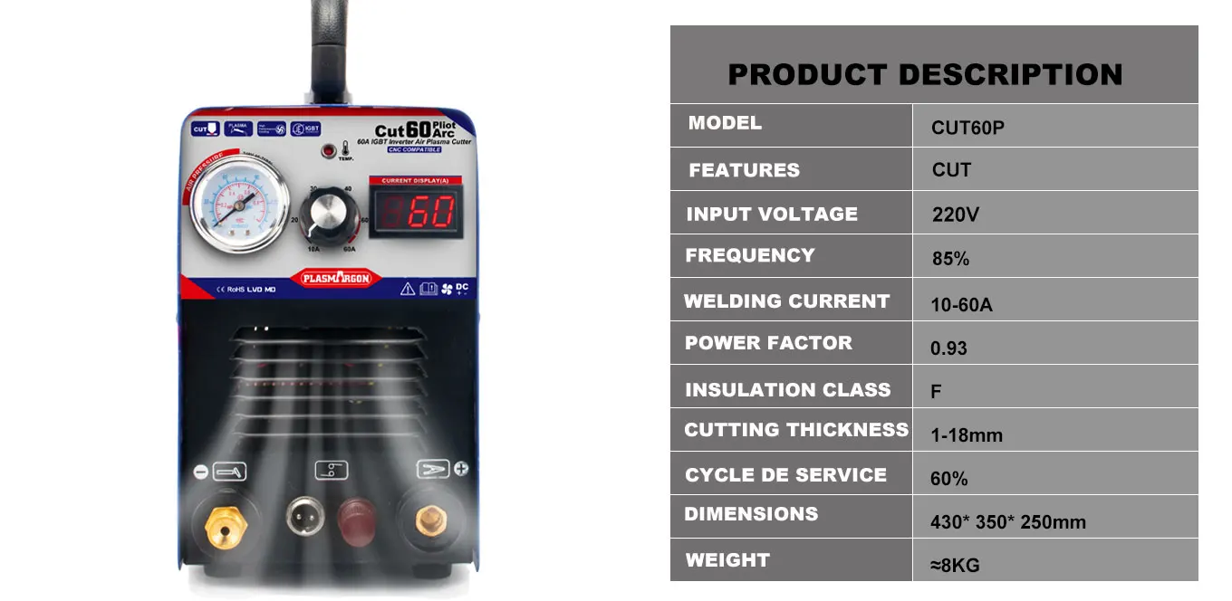 1. Максимальная толщина резки: 18 мм, скорость: 7,8 В/мин; Толщина резки: 14 мм, скорость: 3.9in/мин, автоматический двойной частоты (220V 50/60 Гц)