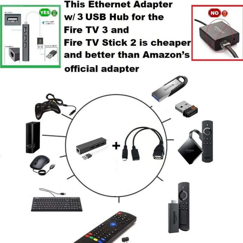 1- LAN Ethernet 3 Порты и разъёмы концентратора: это был разработан и изготовлен только для amazon fire stick и amazon fire tv