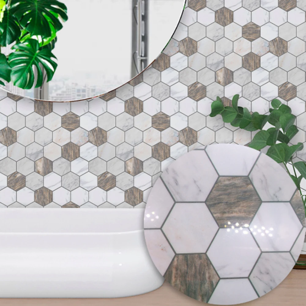 10 шт. коричневый белый мрамор текстура стикер для настенной плитки Толстый ПВХ Клей Водонепроницаемые обои для кухни ванной комнаты домашний декор