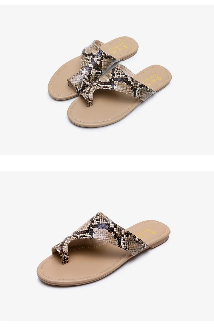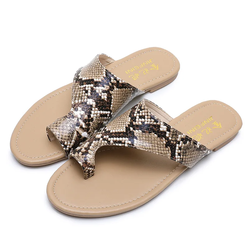 Летние женские шлепанцы на плоской подошве; Модные Вьетнамки в богемном стиле со змеиным узором; Удобные пляжные женские Мягкие Шлепанцы; Повседневная обувь