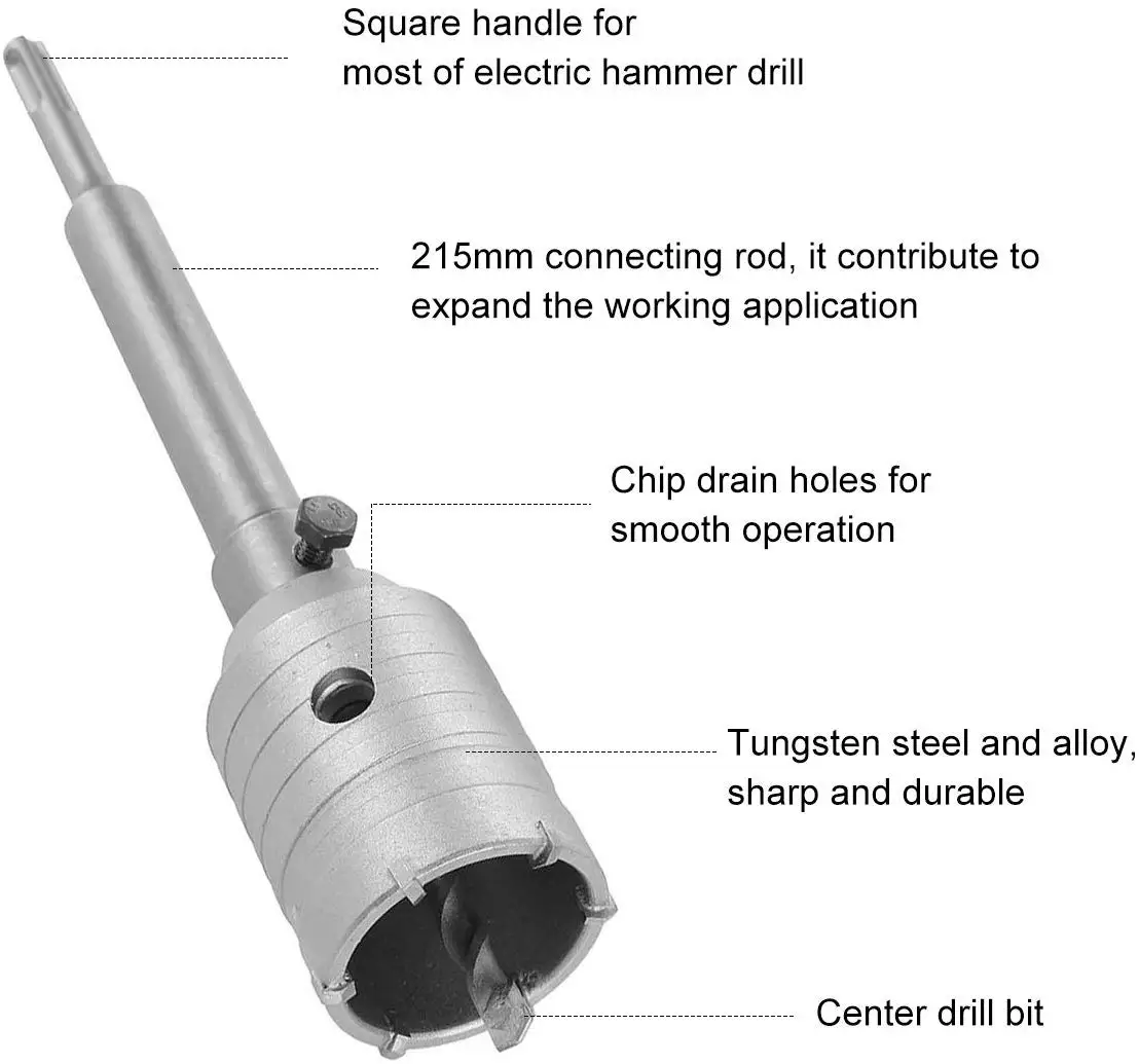 •☀Широкое применение: отлично подходит для сверления бетонных стен, камня, кирпича, цемента, кирпичной кладки, газобетонных блоков, уплотнительных блоков, установки кондиционера.