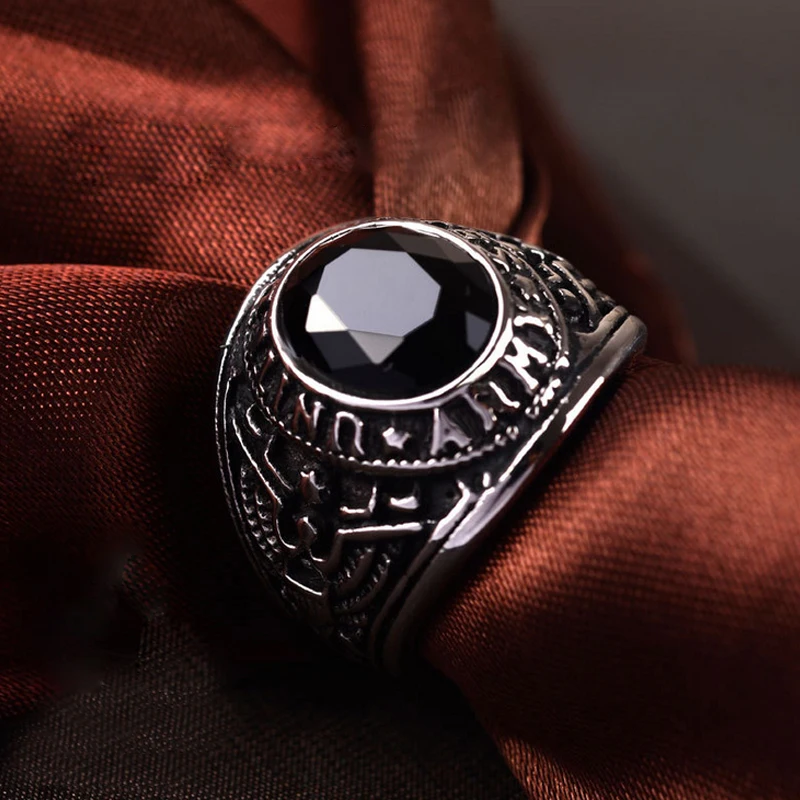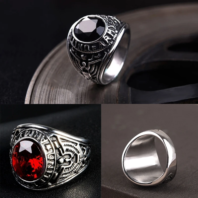 Men's United States Army Ring. Features a oval 5.05 ct (12x10mm) simulated ruby red siam stone in a bezel setting. The center stone is cut to have the sparkle and brilliance of a genuine gemstone. Stainless Steel 316L jewelry is durable, hypo-allergenic and will not oxidize or tarnish over time. (Black shading on ring may appear lighter in person than pictured.) Includes gift box for giving or storage!