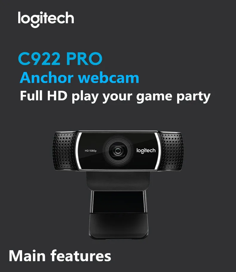 Встроенный микрофон Logitech C922 PRO с автофокусом, анкерная веб-камера full HD, веб-камера HD Pro для записи 1080p, веб-камера для видеозвонков