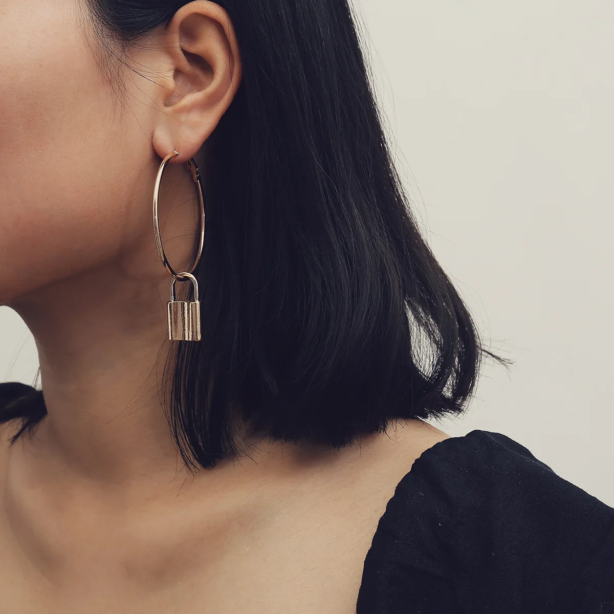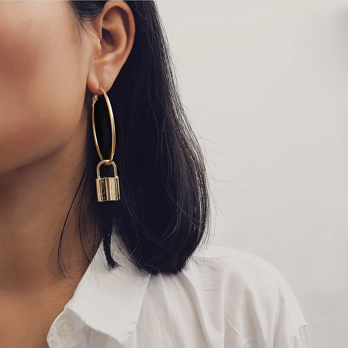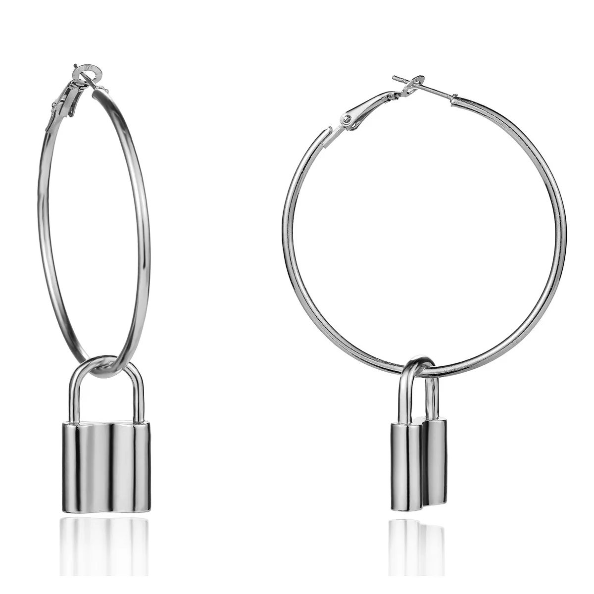 1 пара, модные женские трендовые серьги-кольца для девушек, геометрические серьги из сплава с круглым замком, ювелирные изделия, QZ0046
