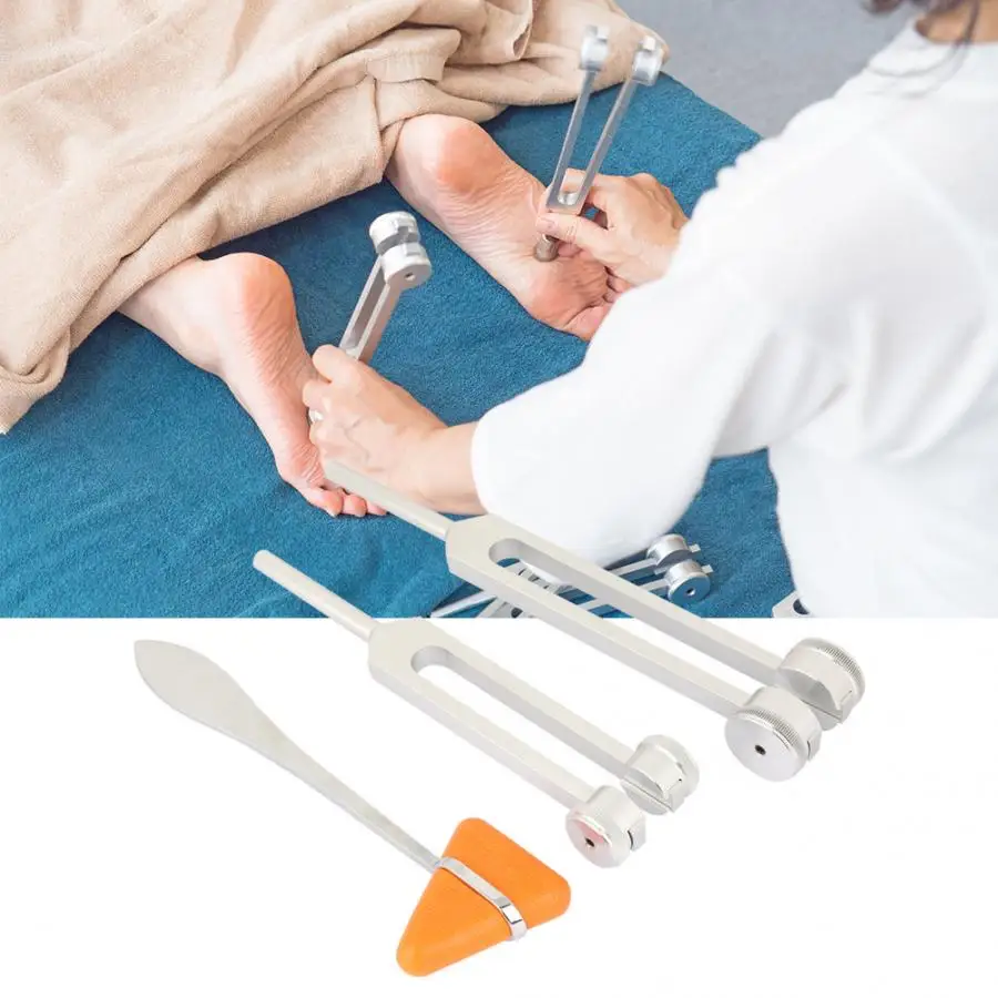 3 шт. Алюминий сплава серебра неврологический камертон и перкуссионный молоток комплект 128 Гц + 256 Гц