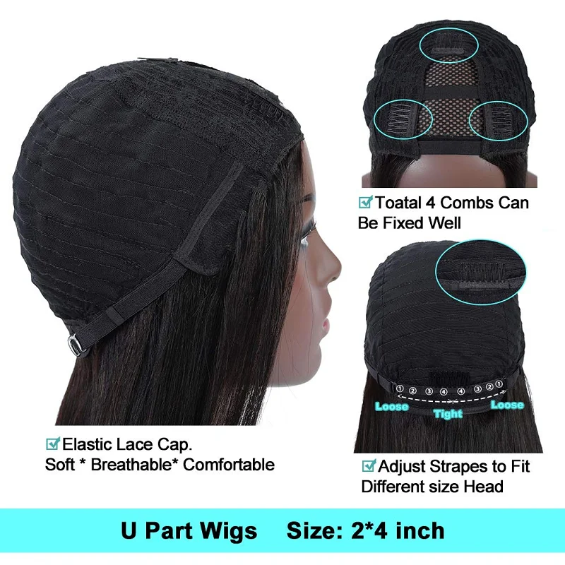 7 расчесок с регулируемыми бретелями и эластичной сеткой Кепка среднего размера отлично подходит для больших размеров и маленьких размеров Простота установки Выглядит естественно Хорошее качество и не линяет 4*2 U часть парика также может сделать различные размеры по запросу клиента