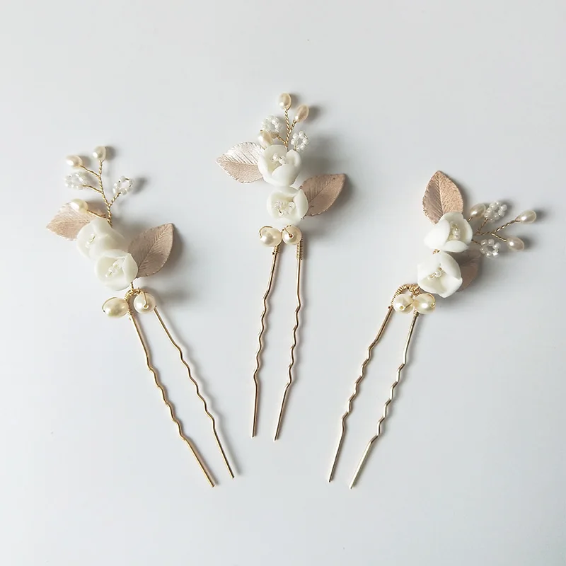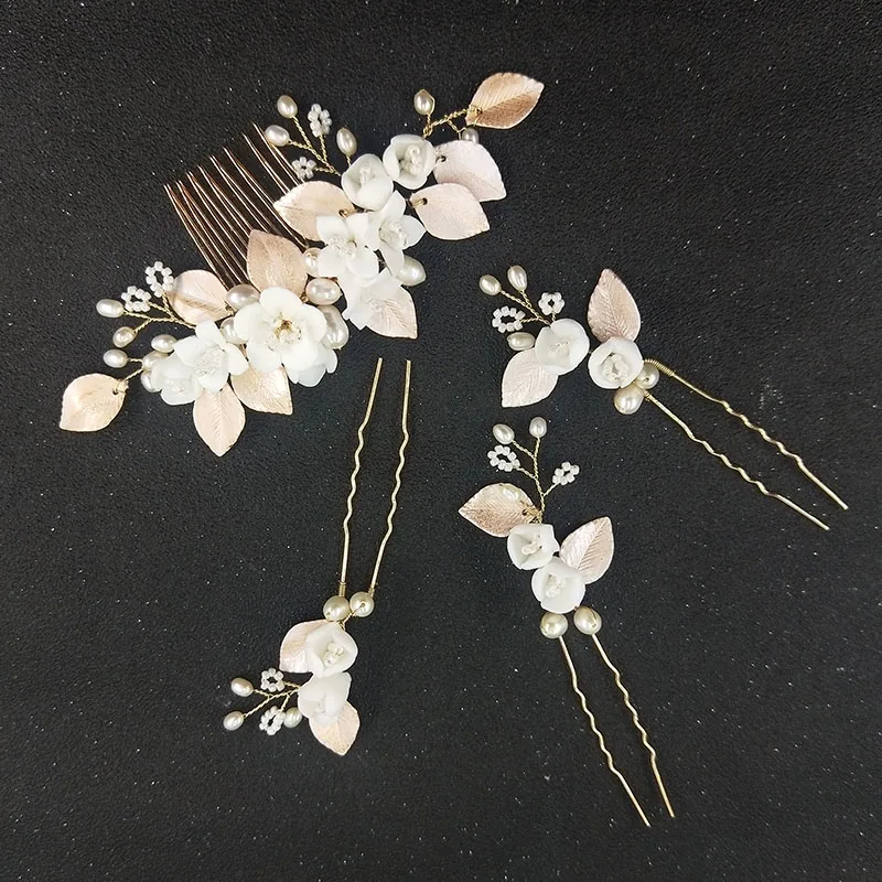 Our company is professional in handmade bridal parasol.bridal tiara,hair vine and headband,hair comb and clip,etc.All details are entirely 100% handmade. Wedding Hair Jewelry Handmade Ceramic Flower Hair Comb Pin Set Hair Accessories Women Party Prom Headpiece Material:ceramic flower,crystal,freshwater pearls Color:gold color Each girl chooses what is most suitable for her and want to be perfect on this nice wedding day.
