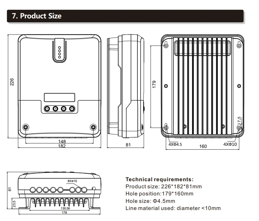 Номинальная мощность PV:400 Вт/12 в 800 Вт/24 В 1200 Вт/36 В 1600 Вт/48 В