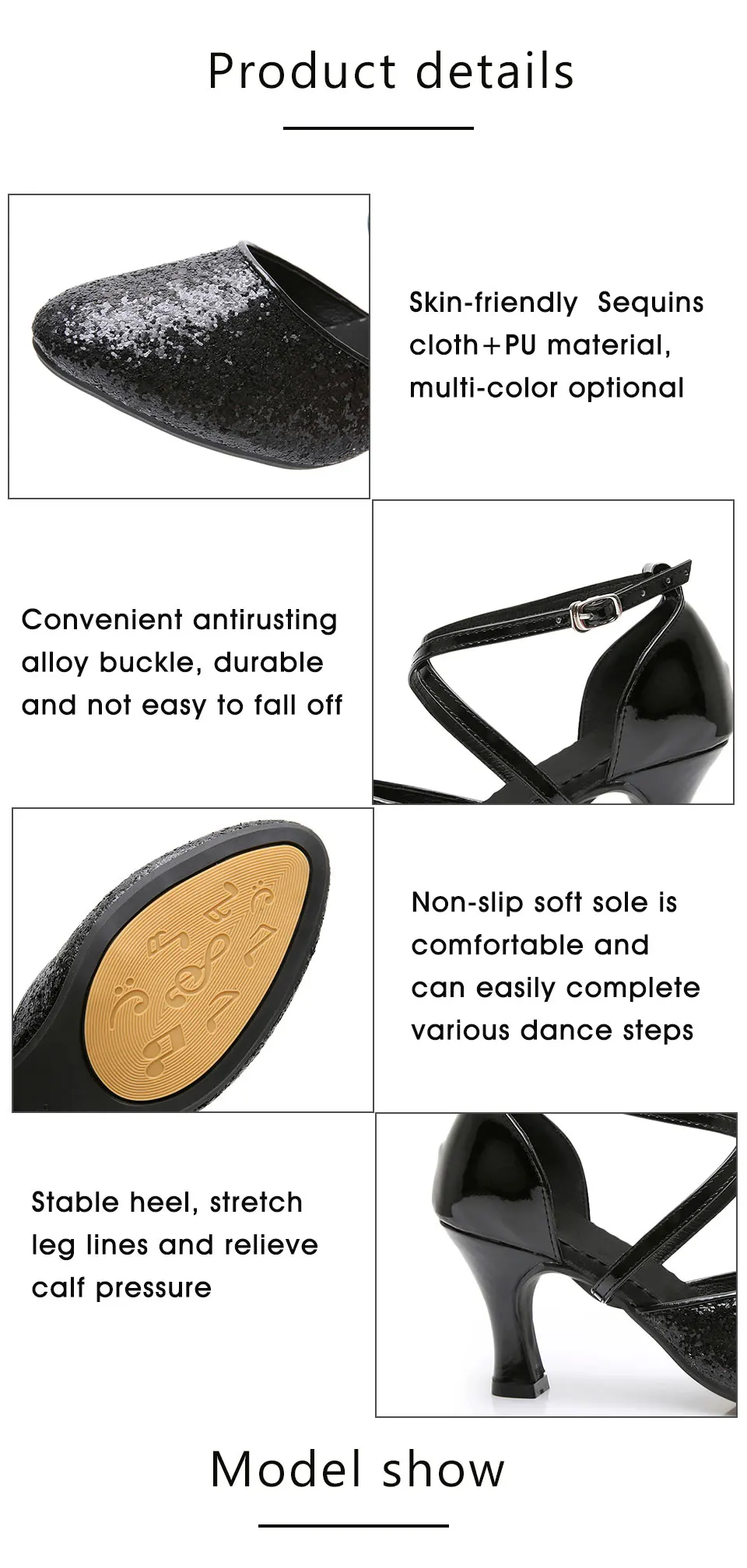 Hipposeus Туфли для латинских танцев плоской подошве для женщин и девушек бальные современные туфли для танцев с блестками 3,5/5,5 см сандалии дропшиппинг