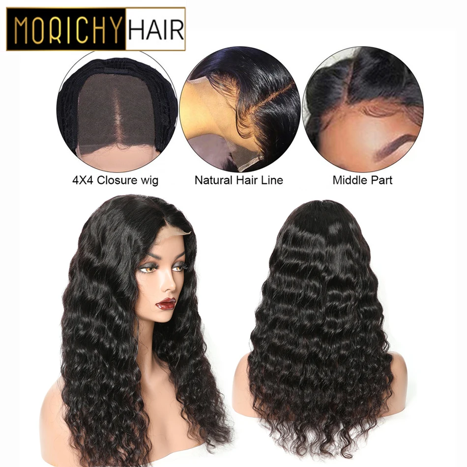 Парики из натуральных волос на шнурках Morichy, 4X4, бразильские натуральные волосы для волос, 13x4