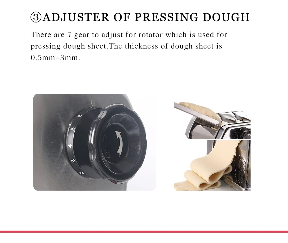 3. Регулируемая настройка толщины: Режет тесто различной толщины от 0,5 мм до 3 мм.