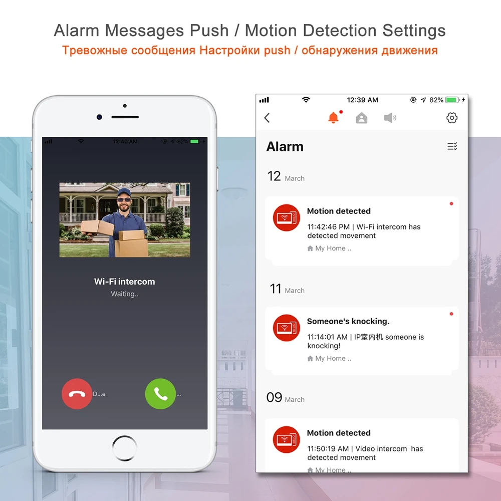 8. Поддержка сообщений нажмите на смартфон (Посетитель нажимает кнопку вызова/Обнаружение движения)